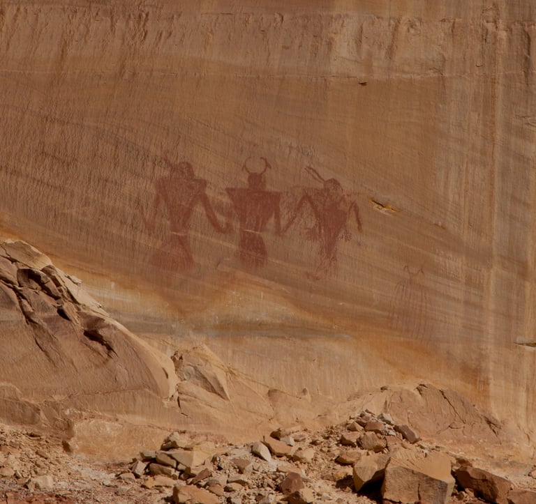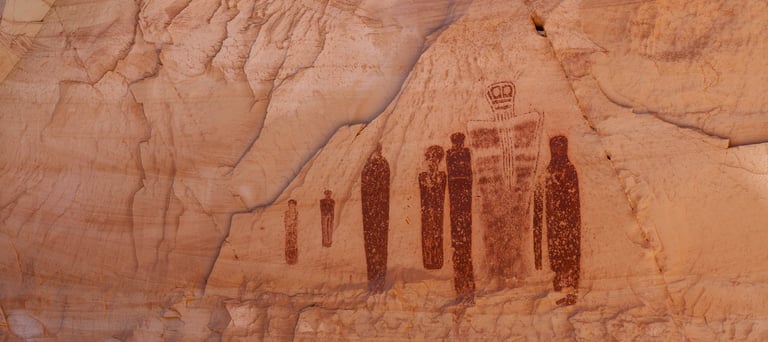 Pictographs such as these are painted on canyon walls, often in very hard to reach locations
