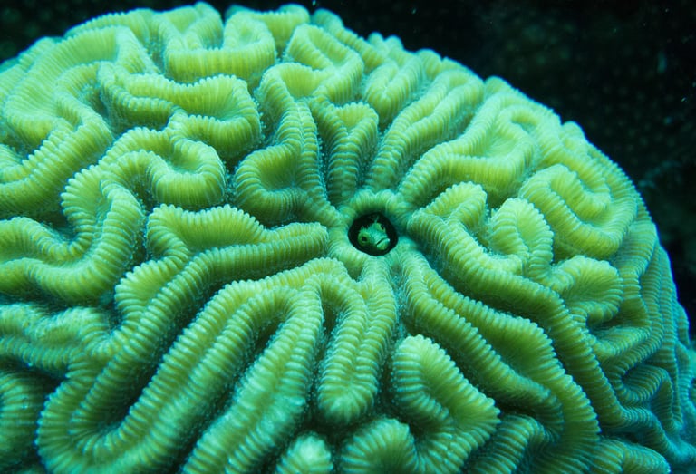 Brain Coral and Blennie, Bonaire